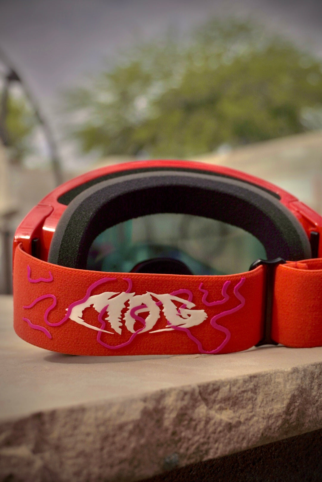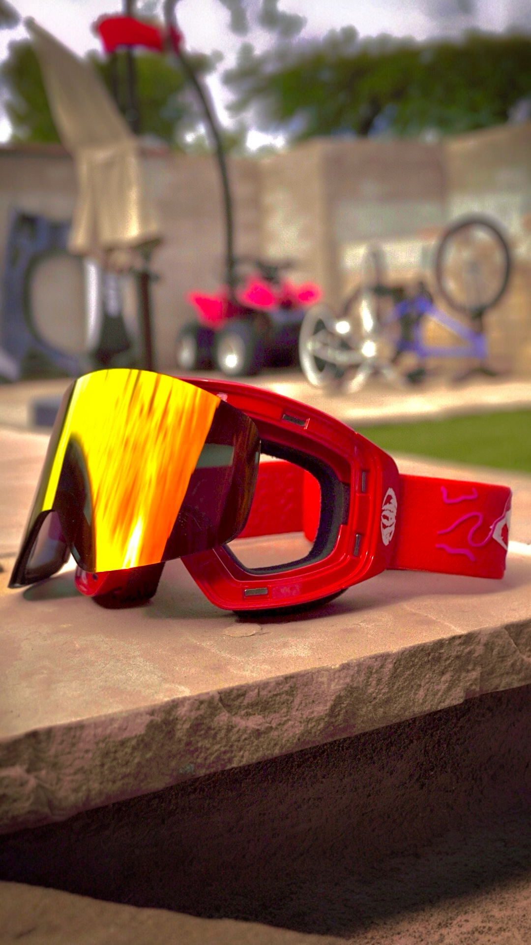 High-quality MX/Ski/biking goggles with magnetic lenses, bright red with a white logo design, and built for unbeatable style and performance with a magnetic lens system for lens change on the go