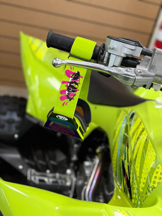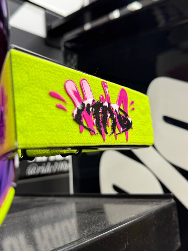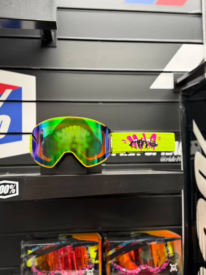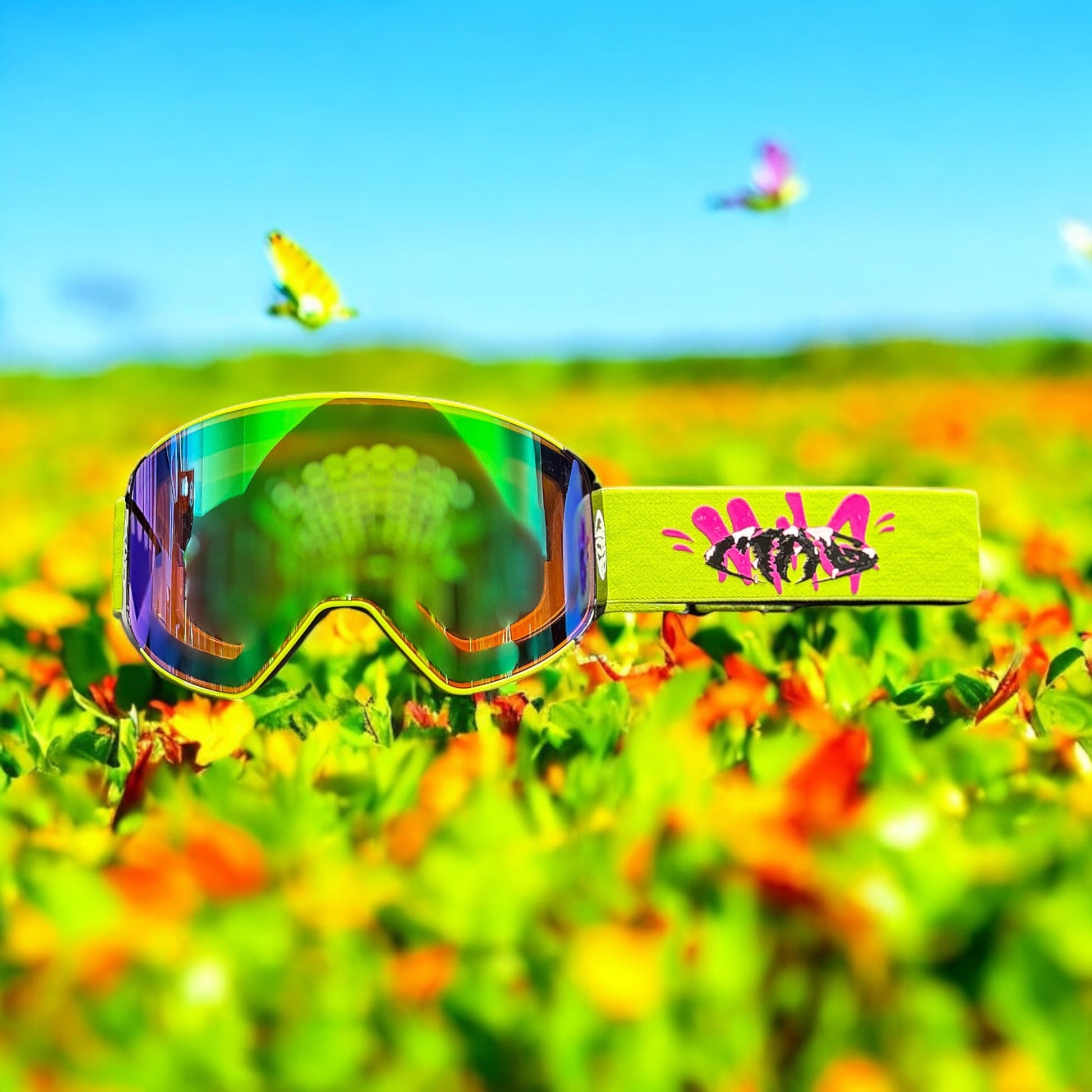 High-quality MX/Ski/biking goggles with magnetic lenses, bold lime green & pink design, and built for unbeatable style and performance with a magnetic lens system for lens change on the go